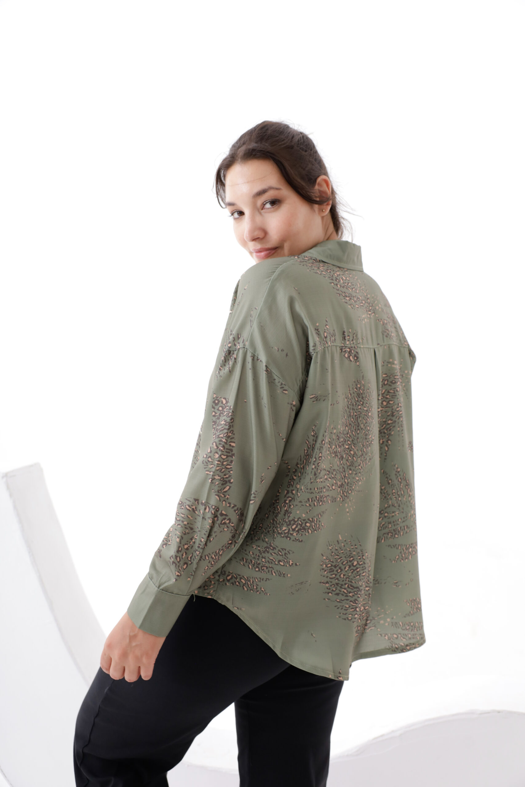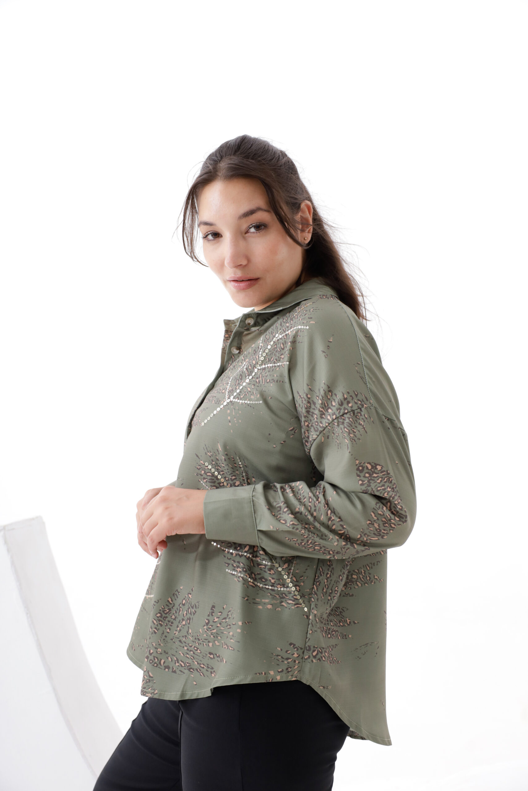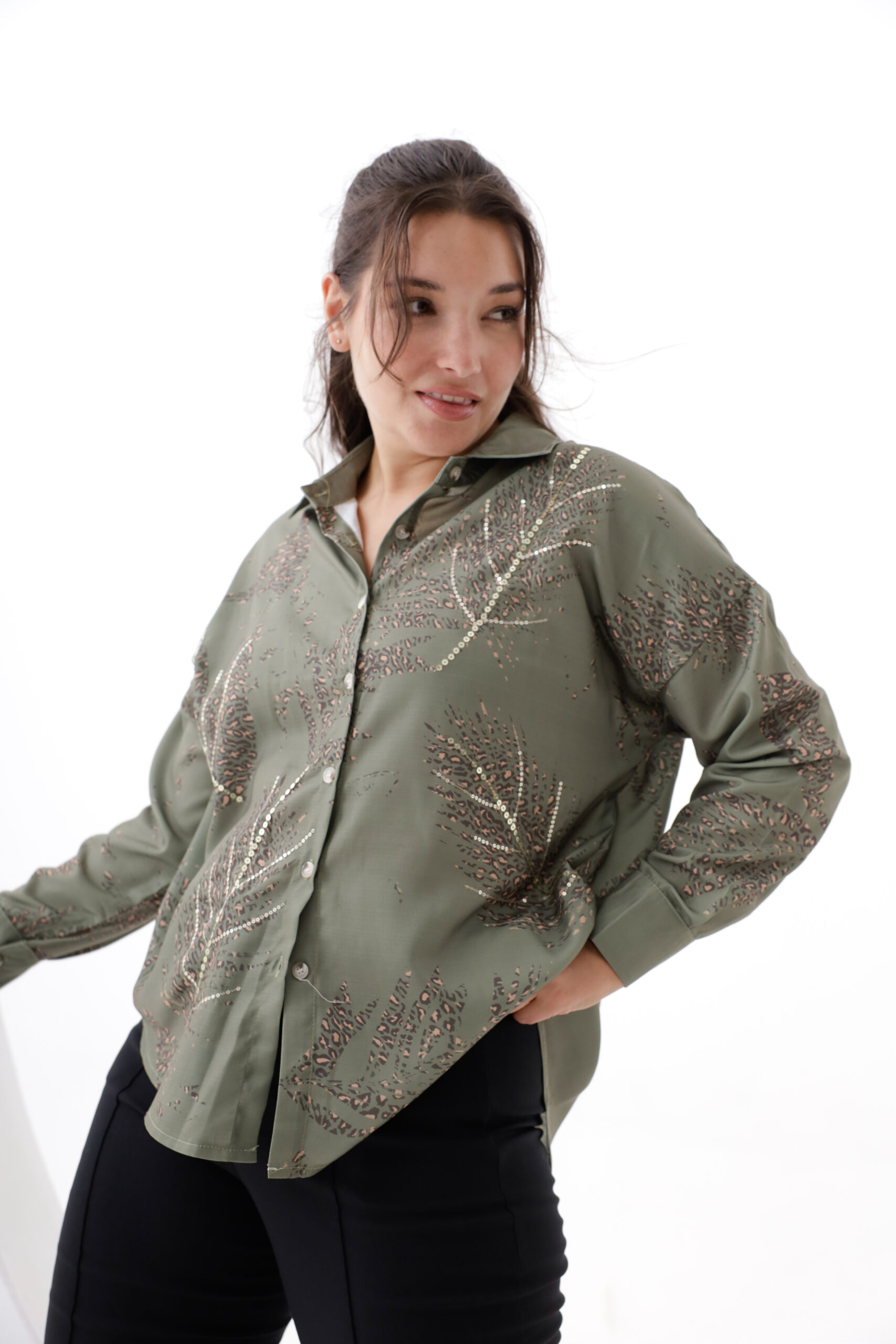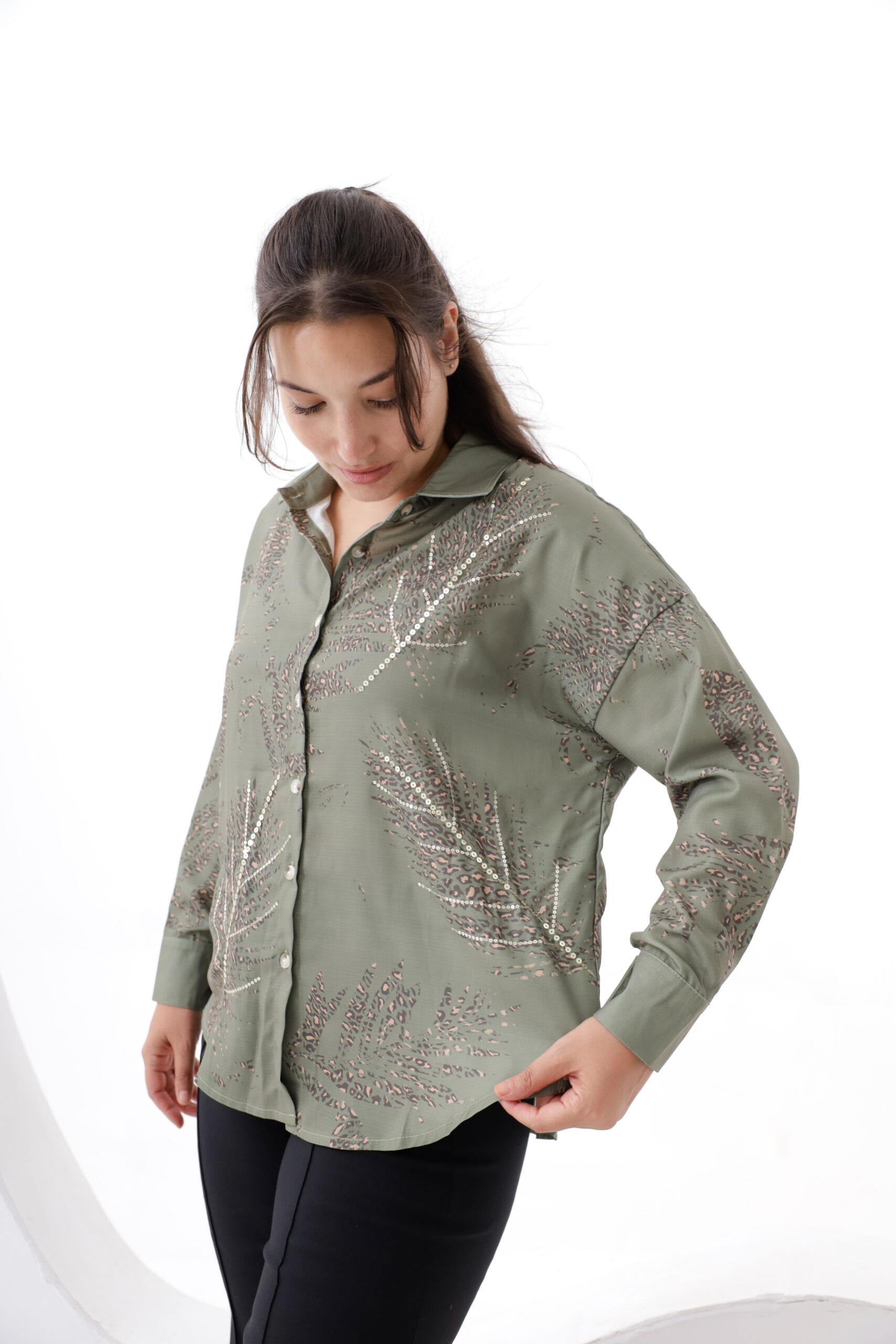 Camisa mangas largas estampado y bordado con lentejuelas