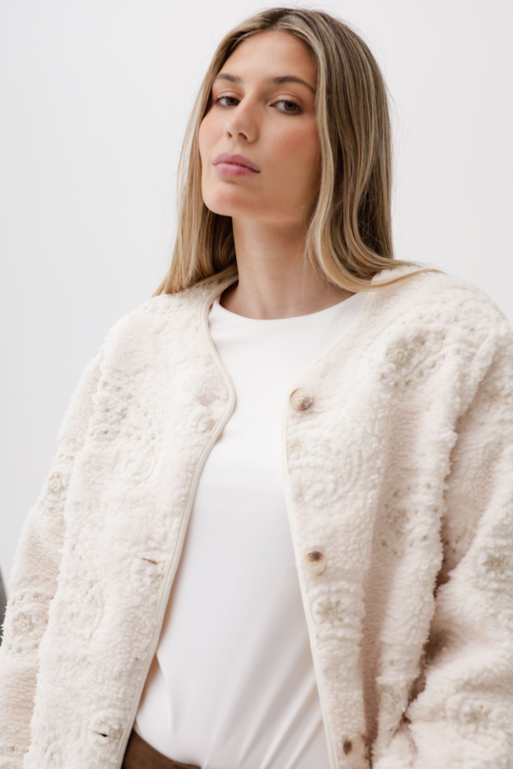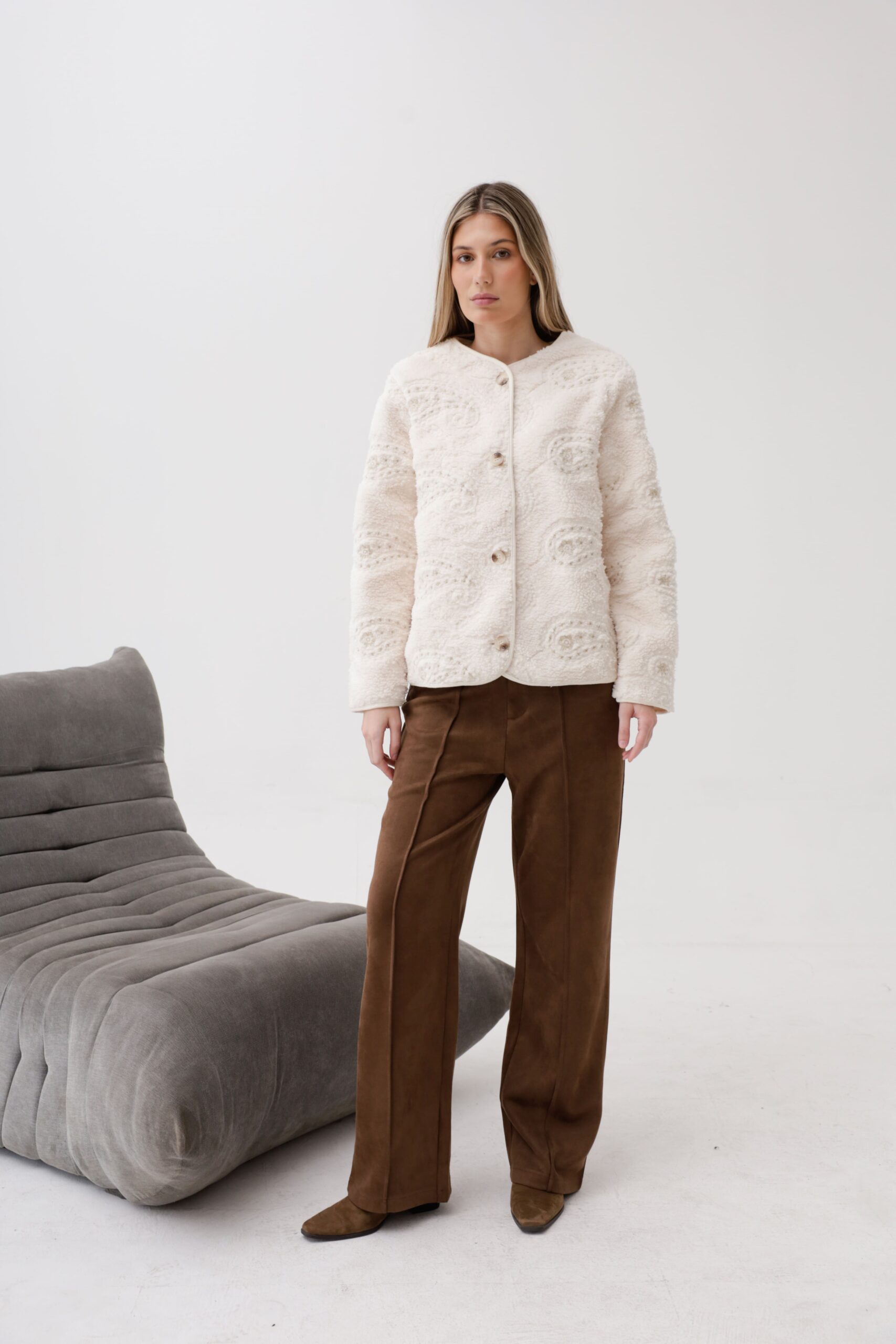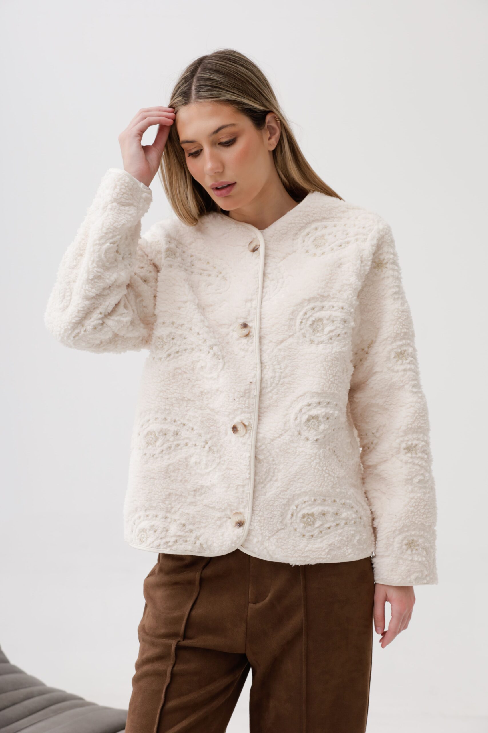 Saco de corterito con bordado con luerex
