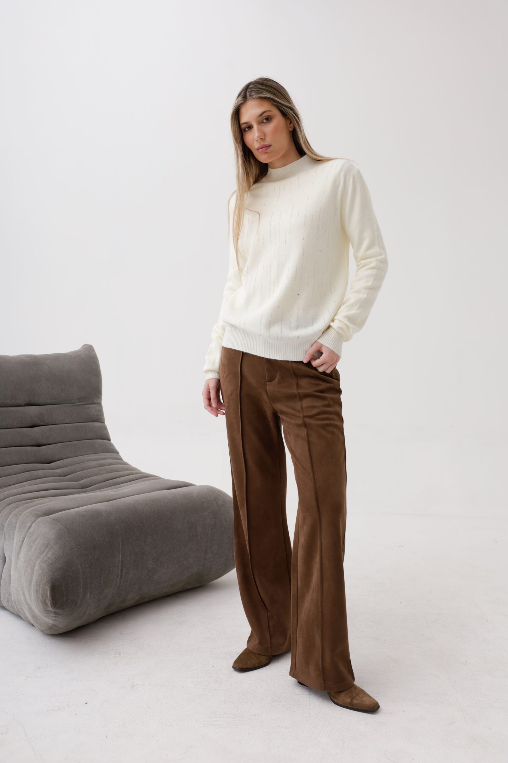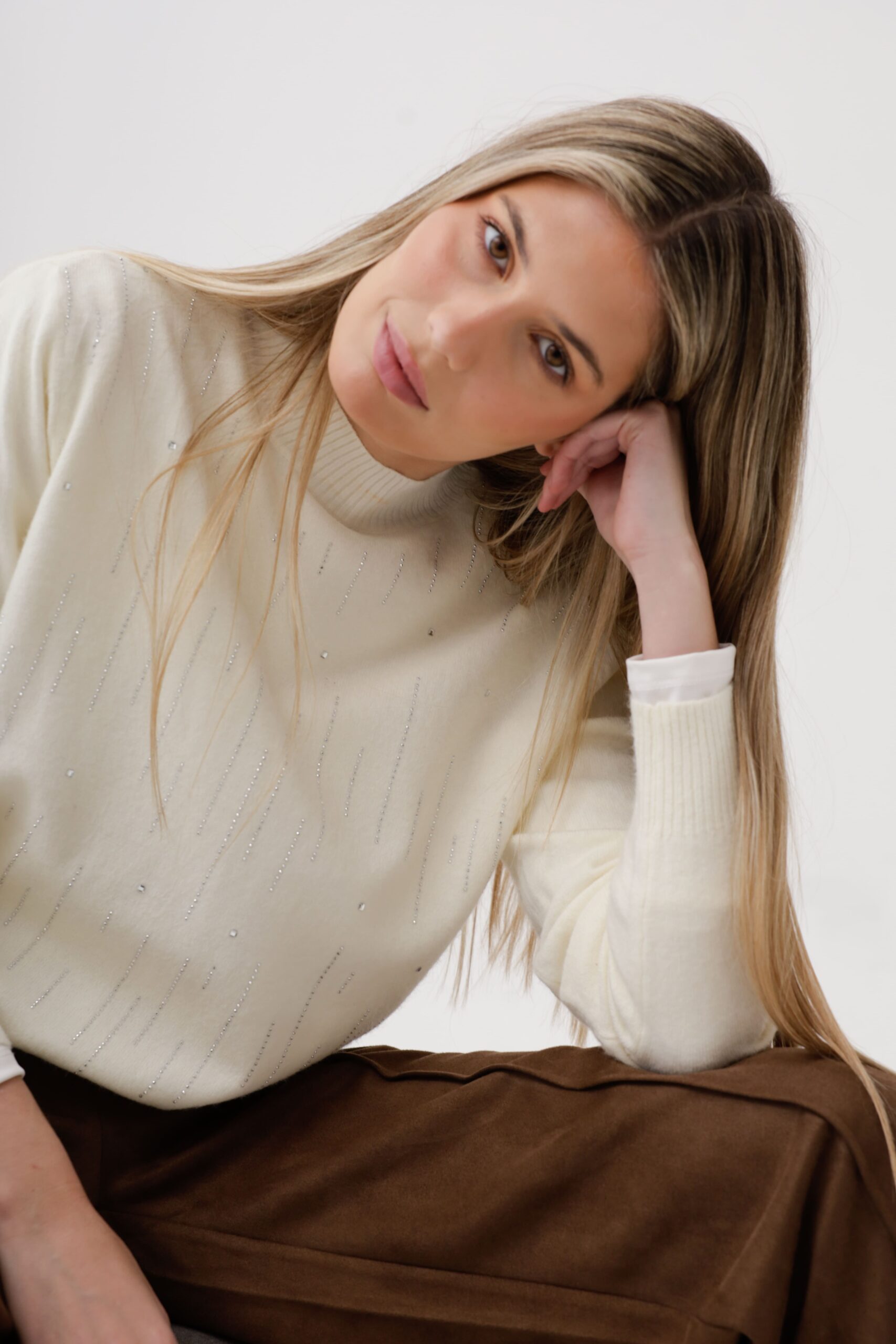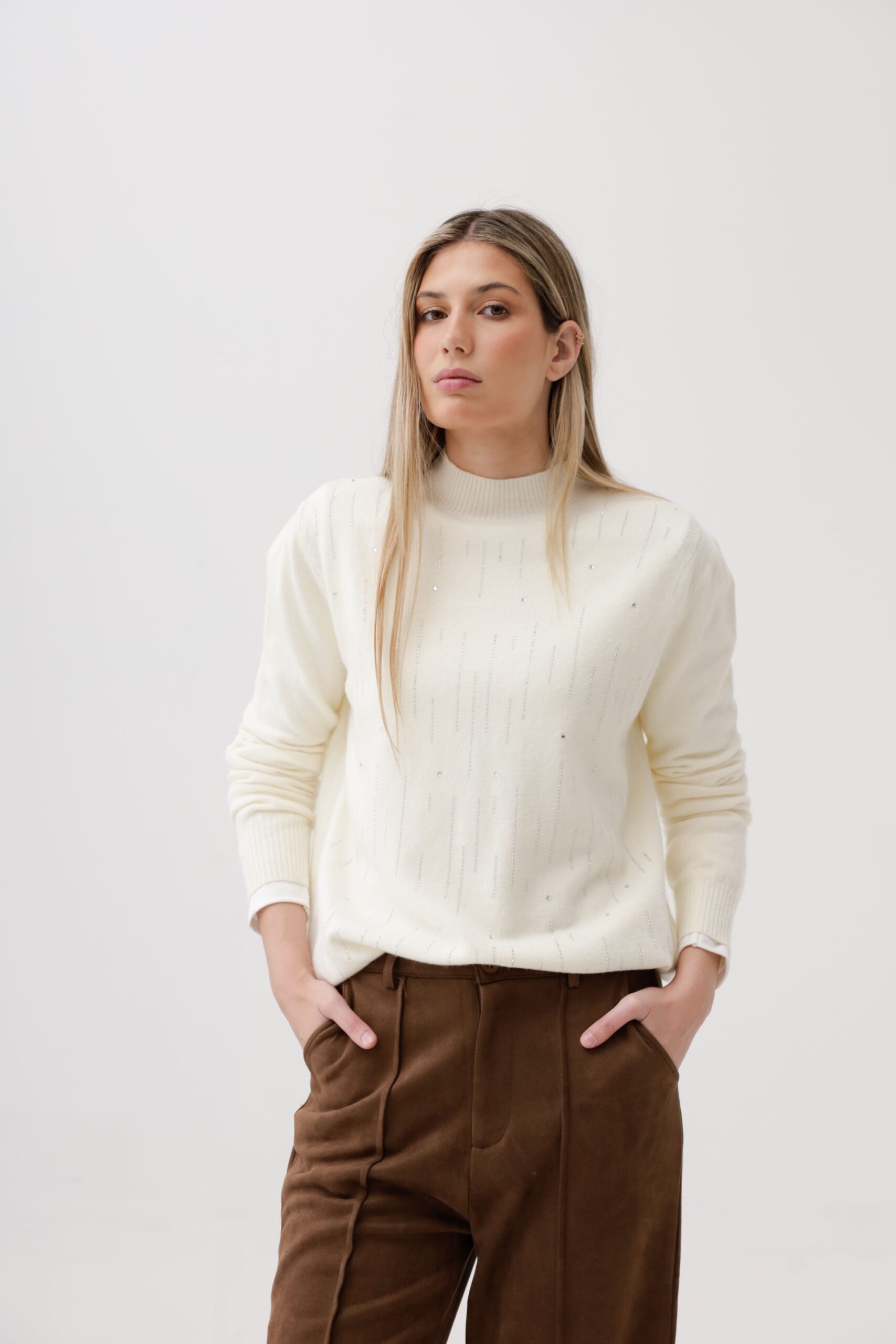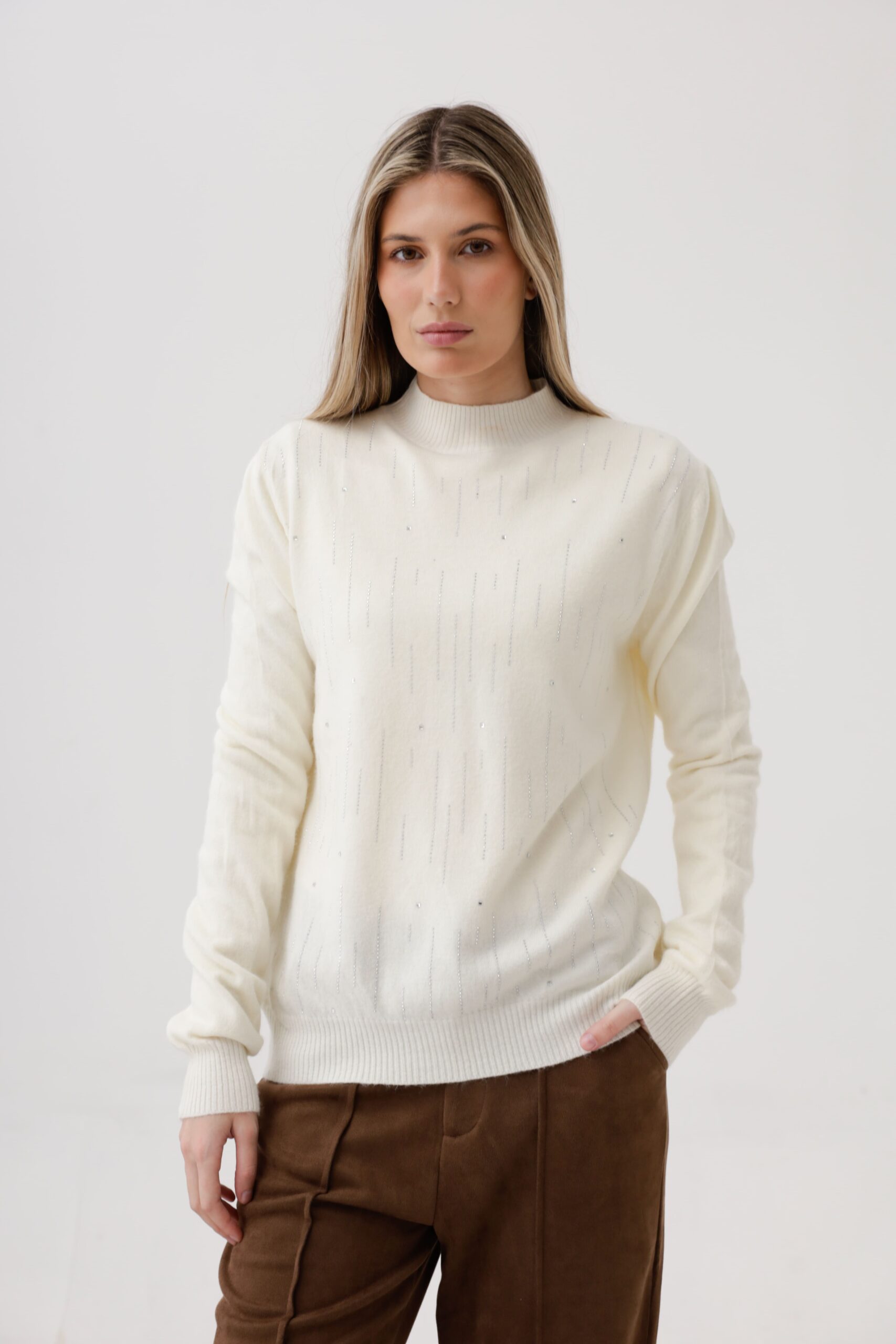 Media polera tejida de bremer con detalles de brillos