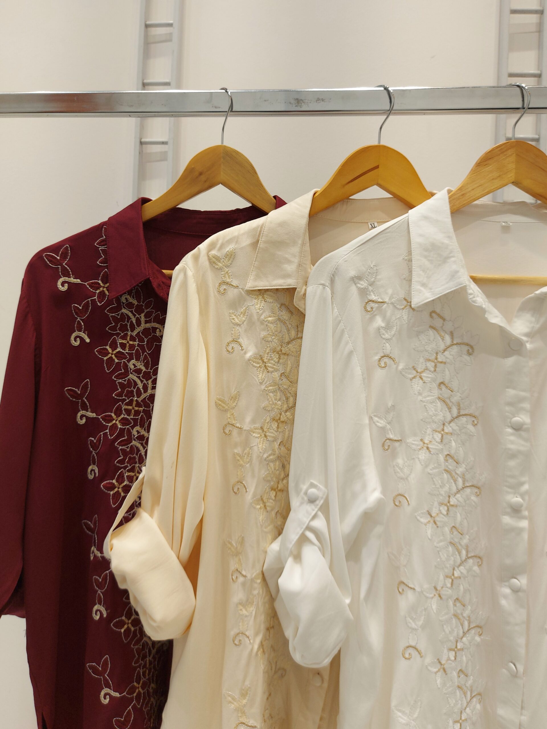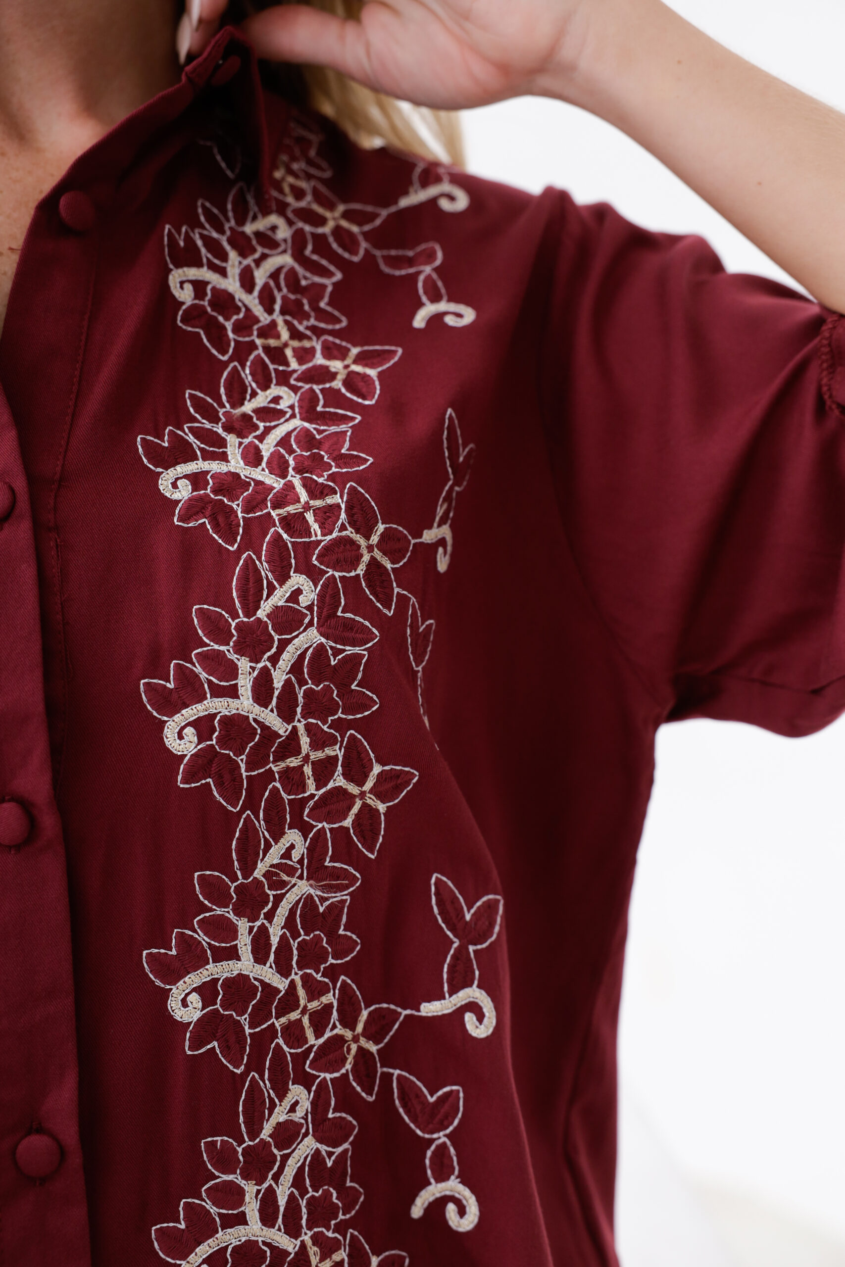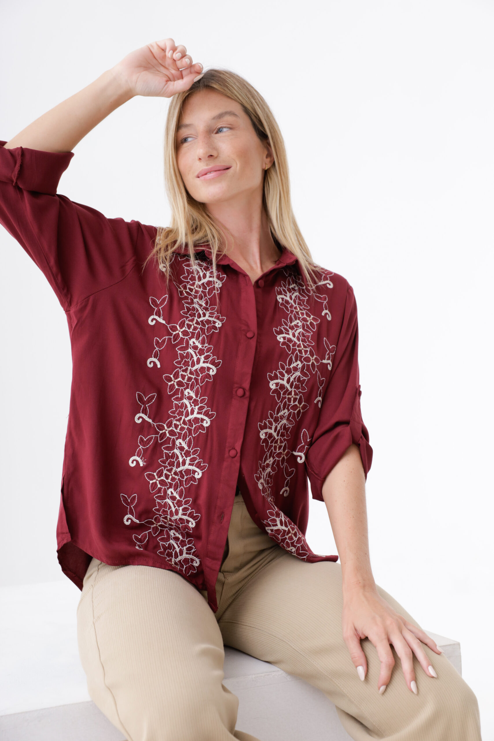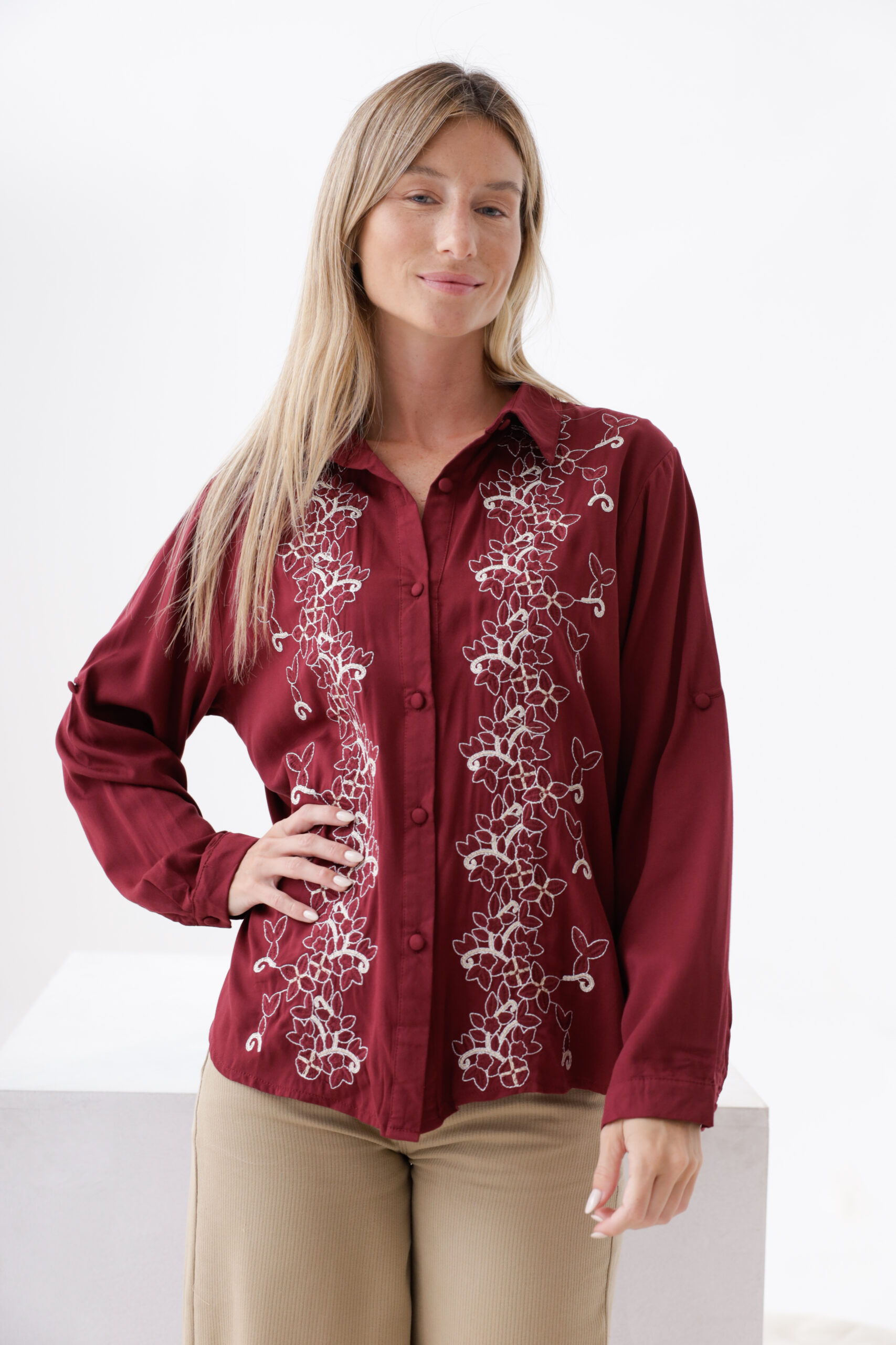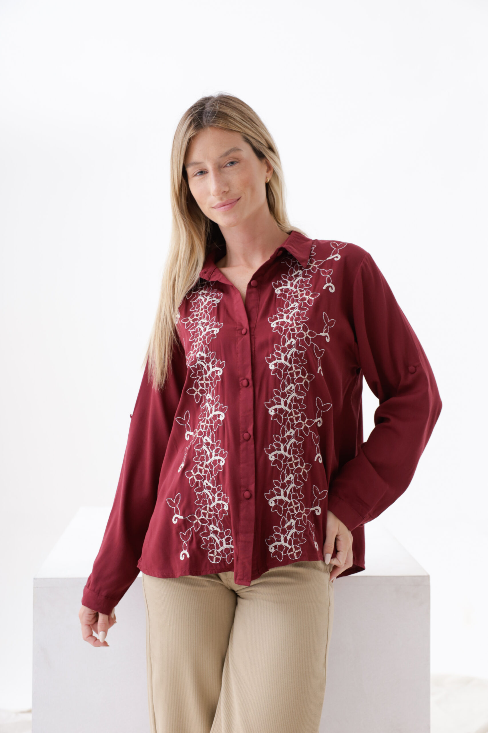 Camisa mangas largas bordado con lurex.